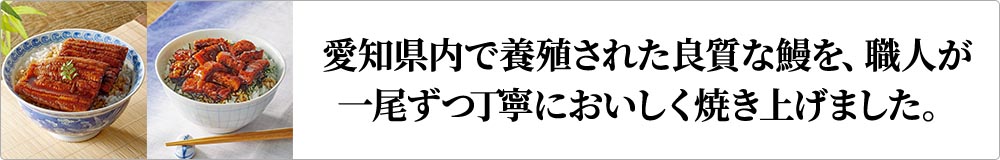 料亭でも使用されている、愛知県内で養殖された良質な鰻を、職人が一尾ずつ丁寧に割き、おいしく焼き上げました。