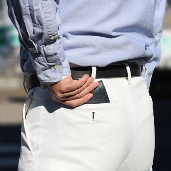 従来の財布と比べると薄いので、胸ポケットに入れてもシルエットを崩さず、出し入れもスムーズ。大人のスマートな所作を演出してくれます。