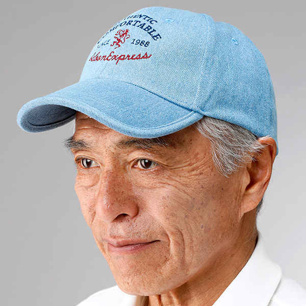 デニムの風合いとブランド刺繍が映えるカジュアルキャップ