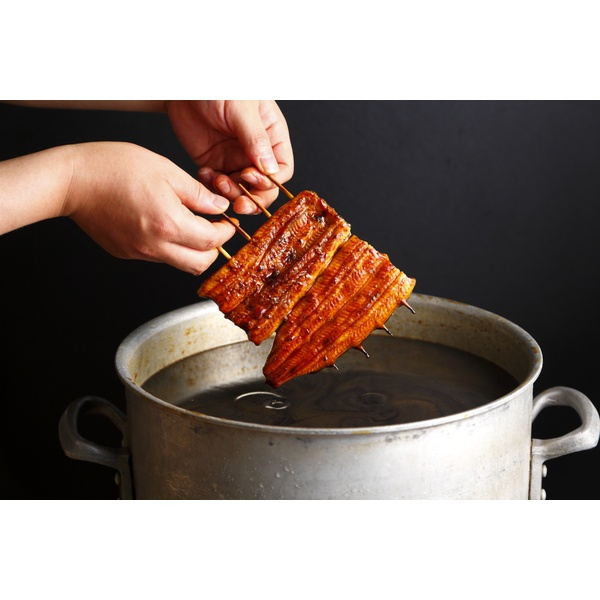 蒸し時間をやや長めに、じっくりと白焼きにし、本醸造醤油、本みりんを使用したオリジナルの焼きタレを4度づけして独自の炙り焼き製法で焼き上げました。